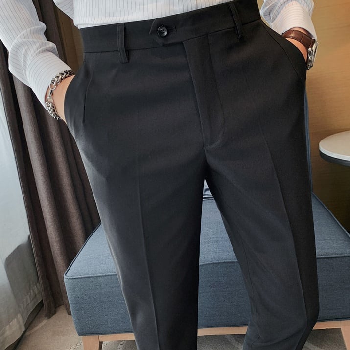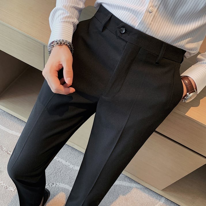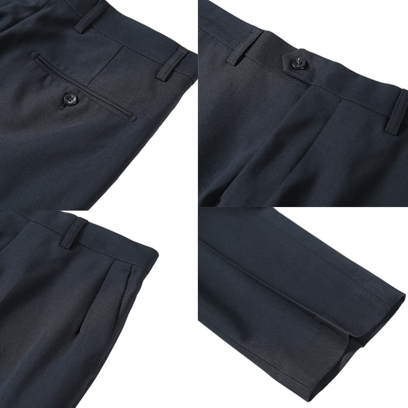 ビジネスシーンにぴったりのフォーマルパンツです。ポリエステル素材で、シワになりにくく、快適な着心地です。ブラック、ホワイト、ネービー、グーリンの4色展開で、様々なシーンに合わせてお選びいただけます。ビジネススーツと合わせて、オフィスでの会議や商談に最適です。また、シャツやブラウスと合わせて、セミフォーマルなパーティーやイベントにもおすすめです。