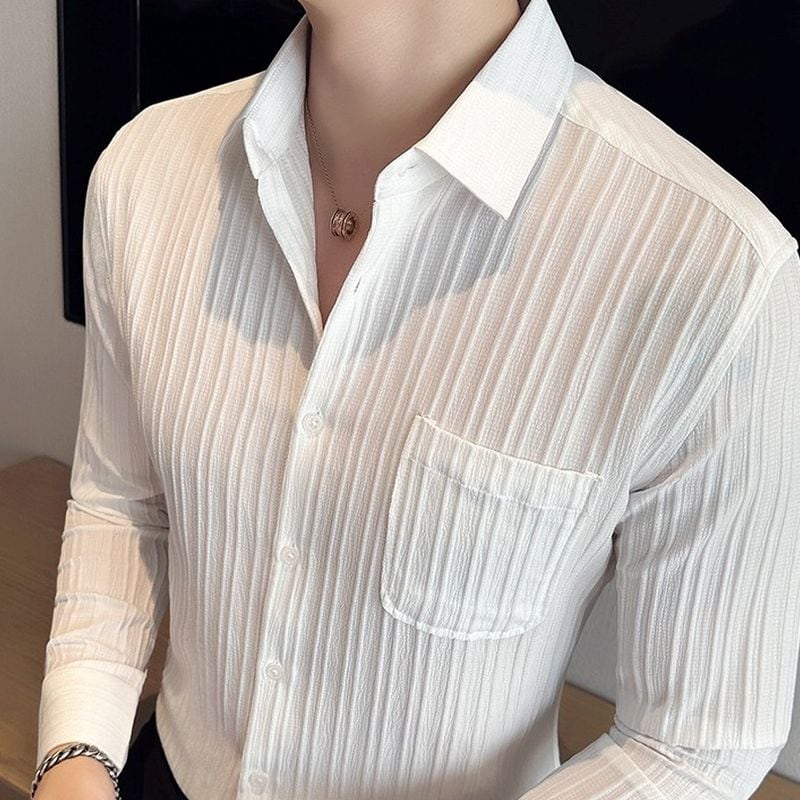 春の新トレンド、韓国版のハンサムルフィアンスタイルにぴったりな、フォールドデザインのハイエンドセンスシャツです。