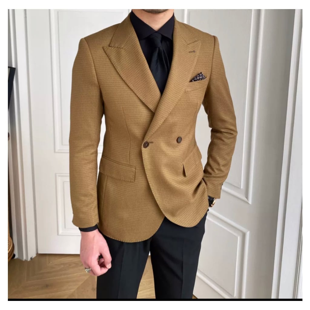 メンズダブルスーツ ブラウンジャケット+ブラックパンツ SU0095