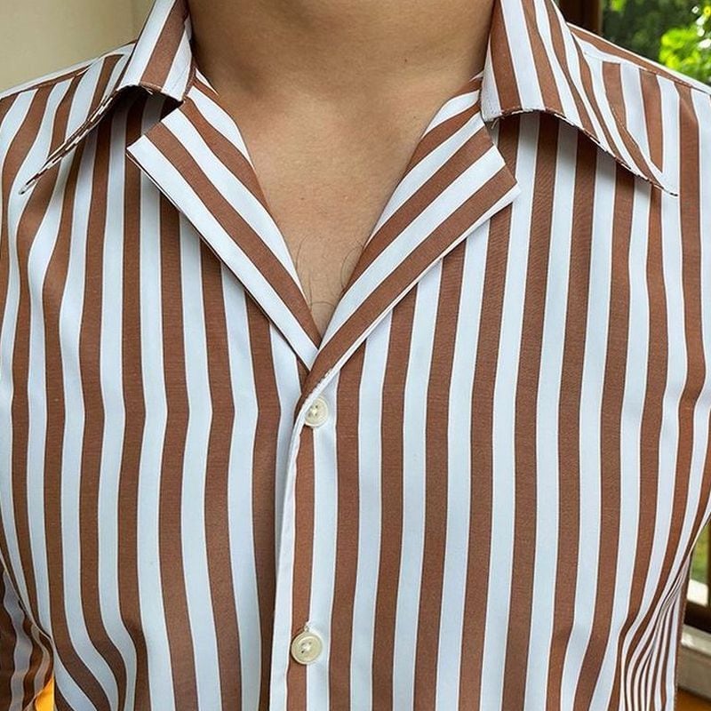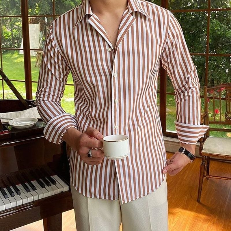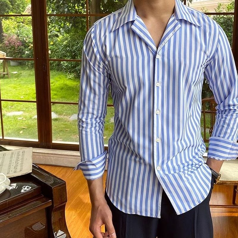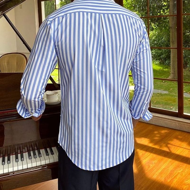 ストライプ長袖シャツは、2つの異なるカラーで展開されています。