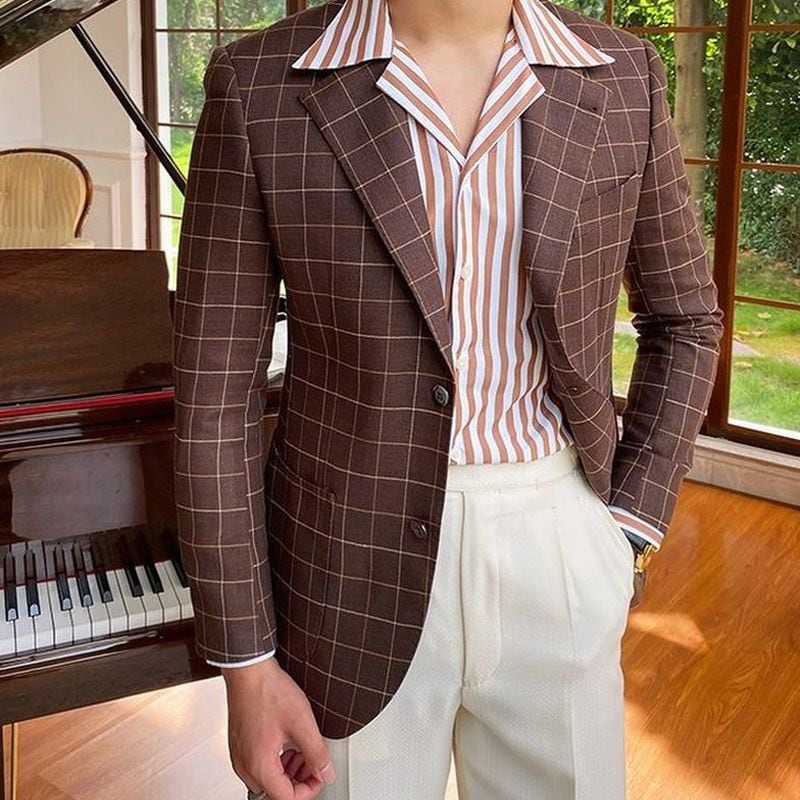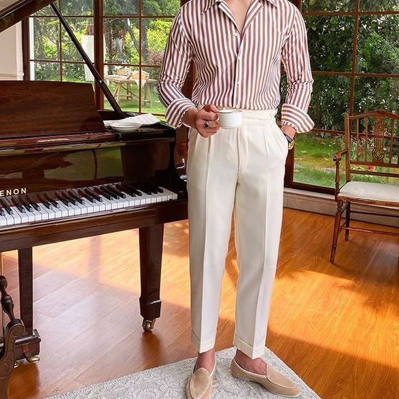 縦のストライプ柄が特徴で、スタイリッシュで洗練された印象を与えます。