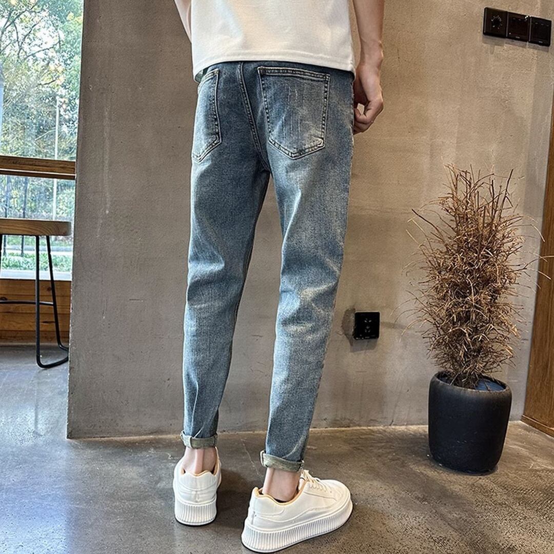 シンプルでスタイリッシュなスリムデニムパンツ。