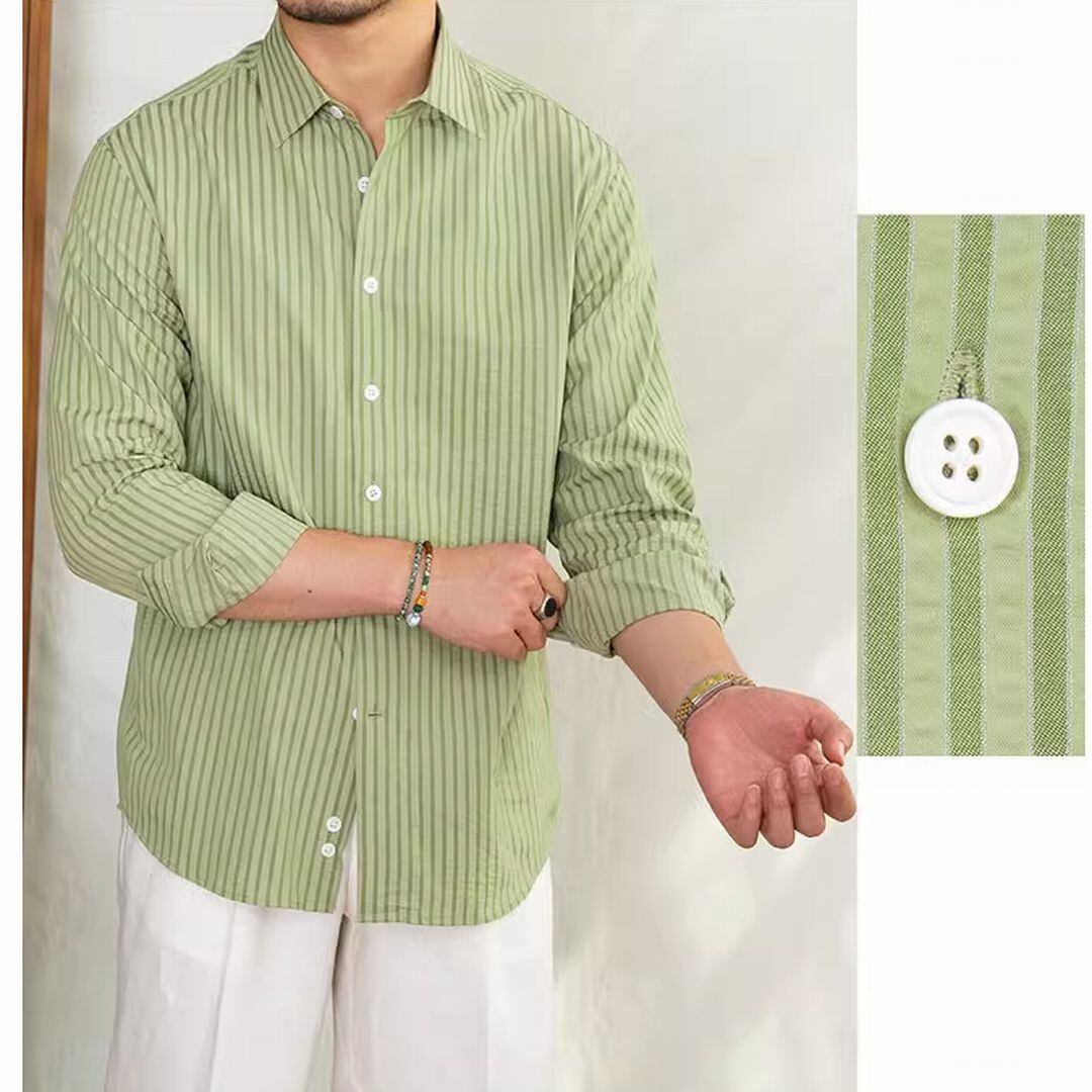 シアサッカーストライプカジュアルシャツ KA0694