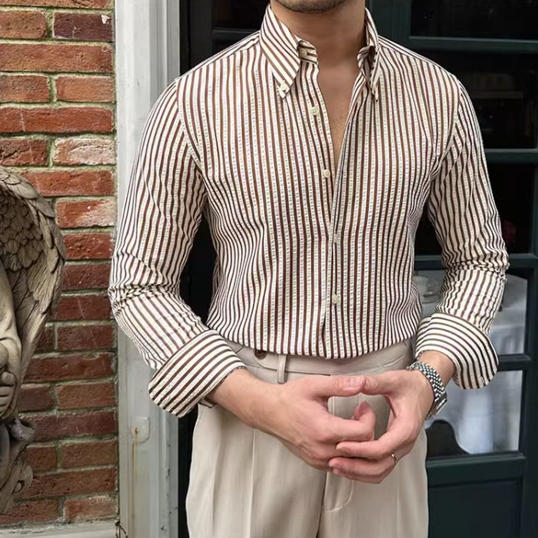 シアサッカーストライプ長袖シャツ KA0716