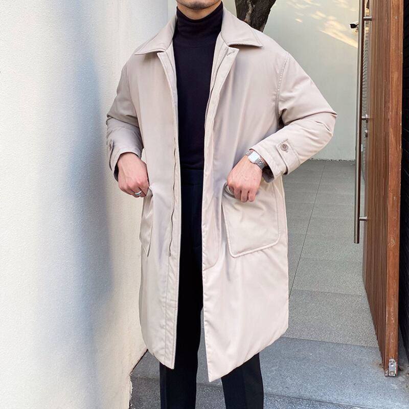 2wayラペルという特徴的なデザインが目を引く、ホワイトダックダウンのダウンジャケット。