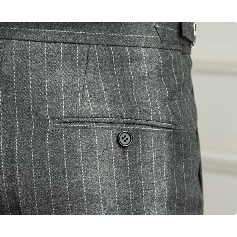 ピンストライプがクロッシーな印象のストレートパンツ。