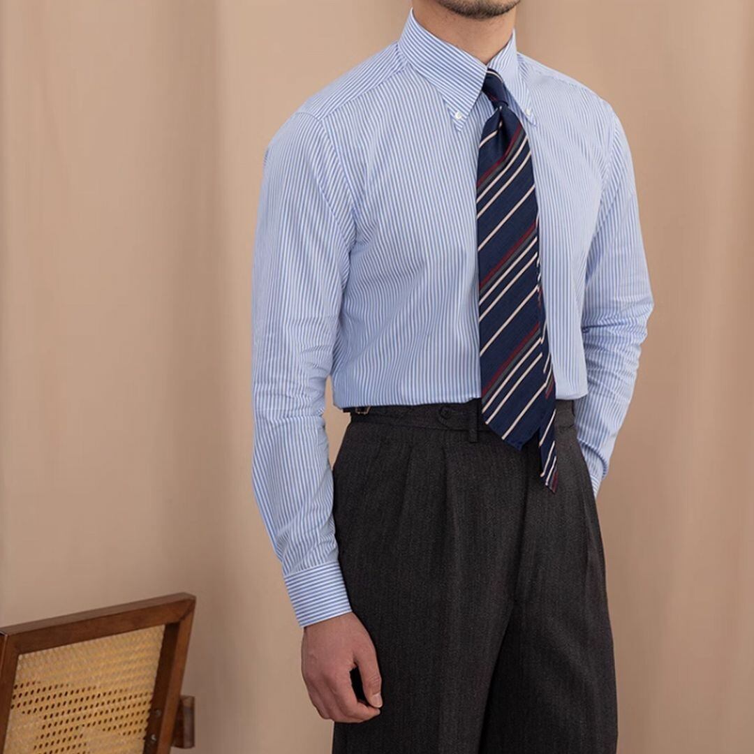 ボタンダウンデザインがカジュアルな雰囲気を加えます。
