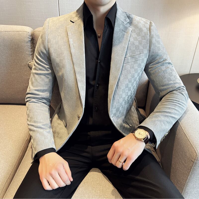 格子柄 シングルブレスト スリムジャケット OJ0386