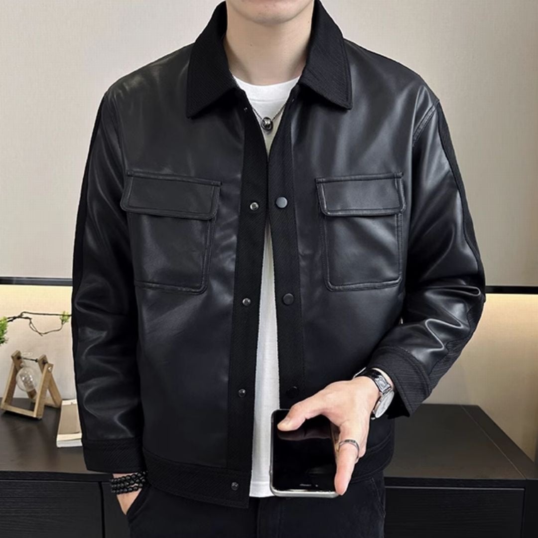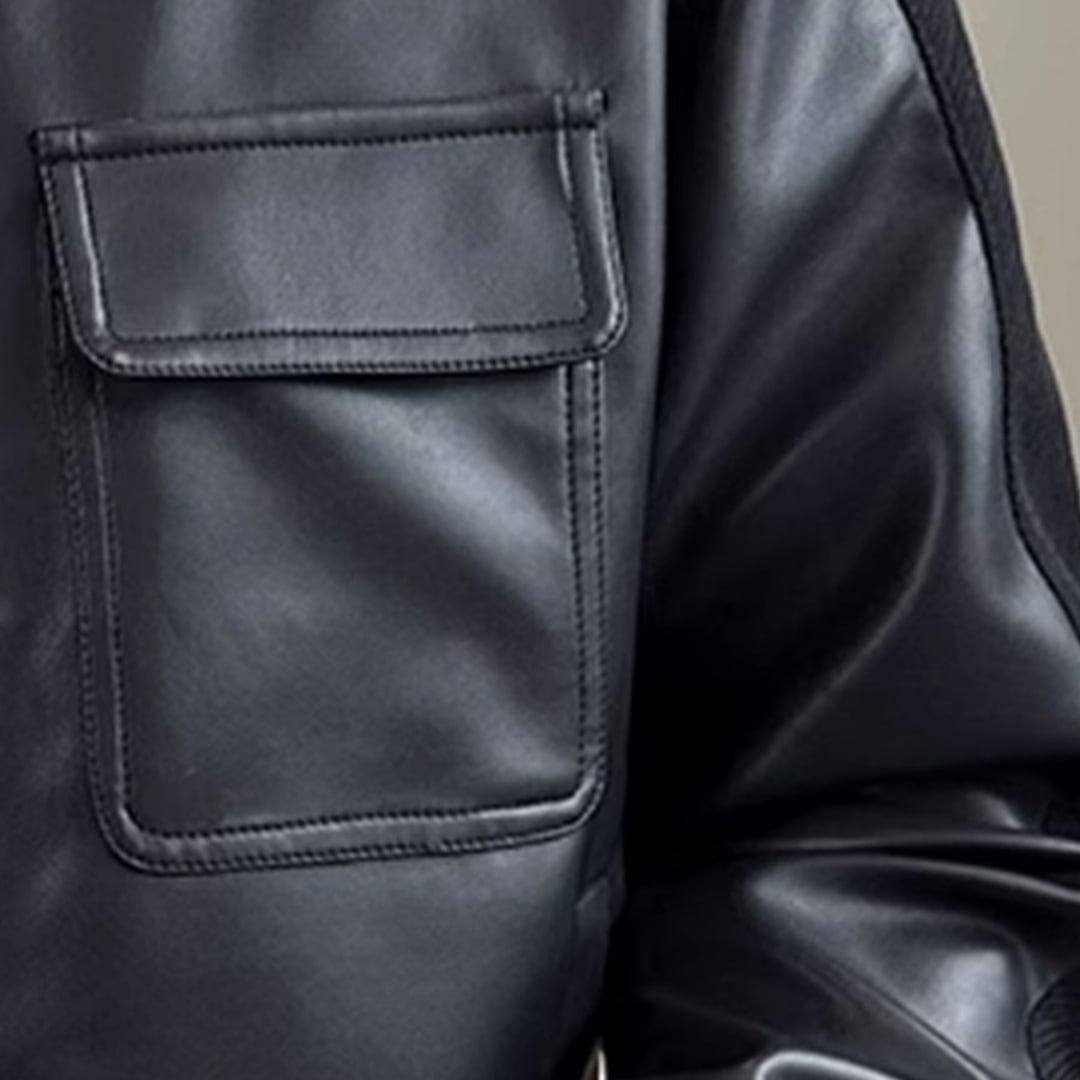 スタイリッシュで個性的な異素材MIXデザインが特徴のPUレザーライダースジャケット。