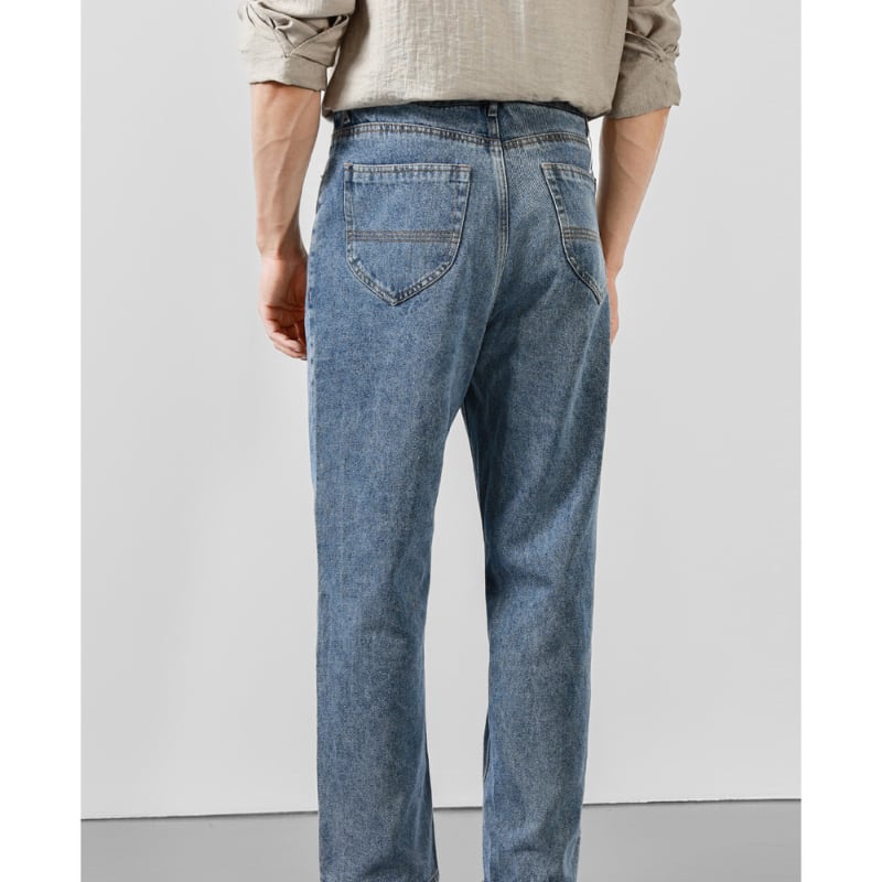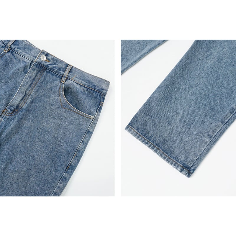 普段使いに最適なシンプルデザインのストレートジーンズ。