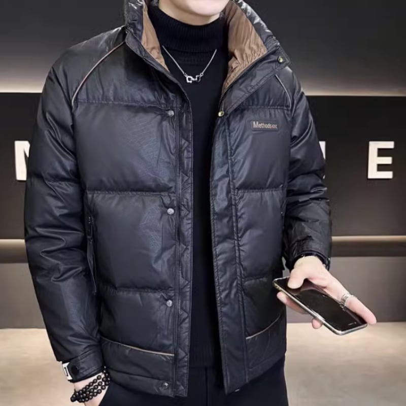 スタンドカラーが首元を暖かく包み、洗練されたシルエットを演出します。